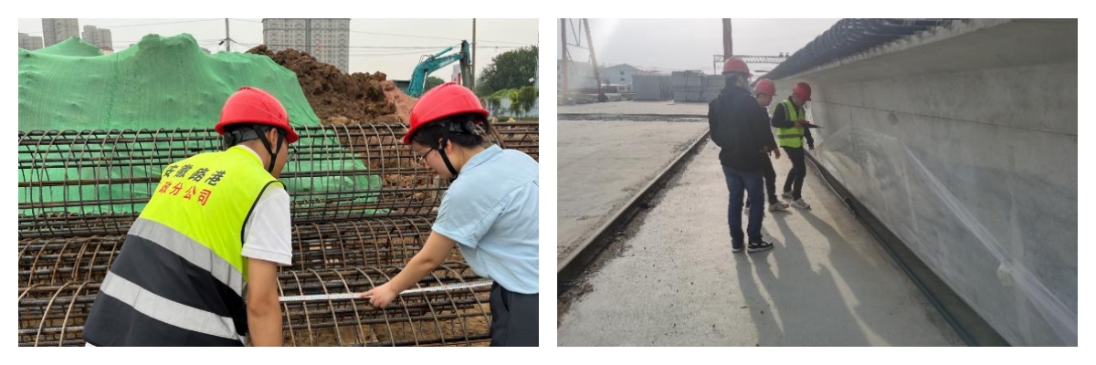 “沉浸式”管理,工程質量保駕護航。針對重大特新項目,如徐淮阜預制標、金寨南路快速化改造02標等,公司科技數字中心(技術質量部)派駐人員駐點工地,直接參與現場工序驗收、質量通病治理、新技術開發應用、深度參與科研項目研究等,深入項目一線,服務監督技術質量工作。