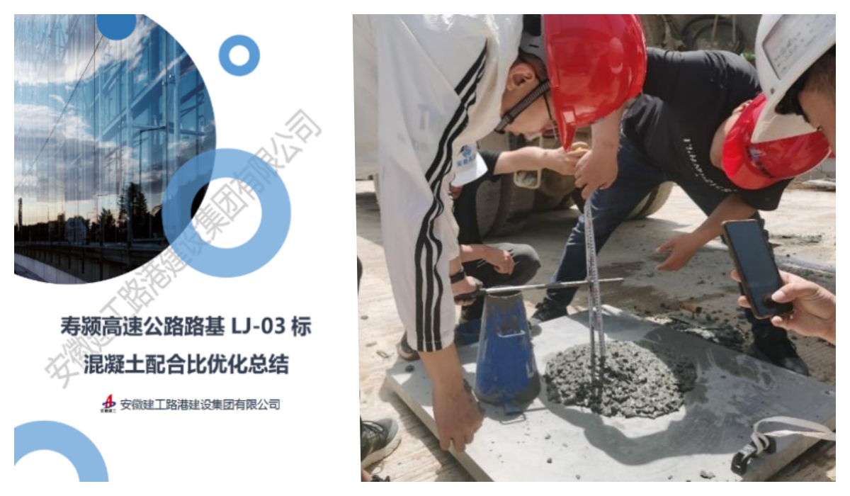 《壽潁03標混凝土配合比優化總結》及混凝土坍落度現場檢測