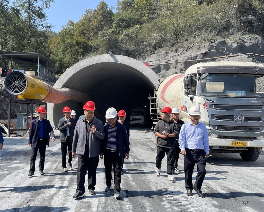 余飚一行來到西遞隧道施工現場,實地察看工程施工情況,聽取了項目負責人關于項目安全文明施工、技術質量管控和施工進展等方面的介紹,對項目建設工作給予充分肯定。