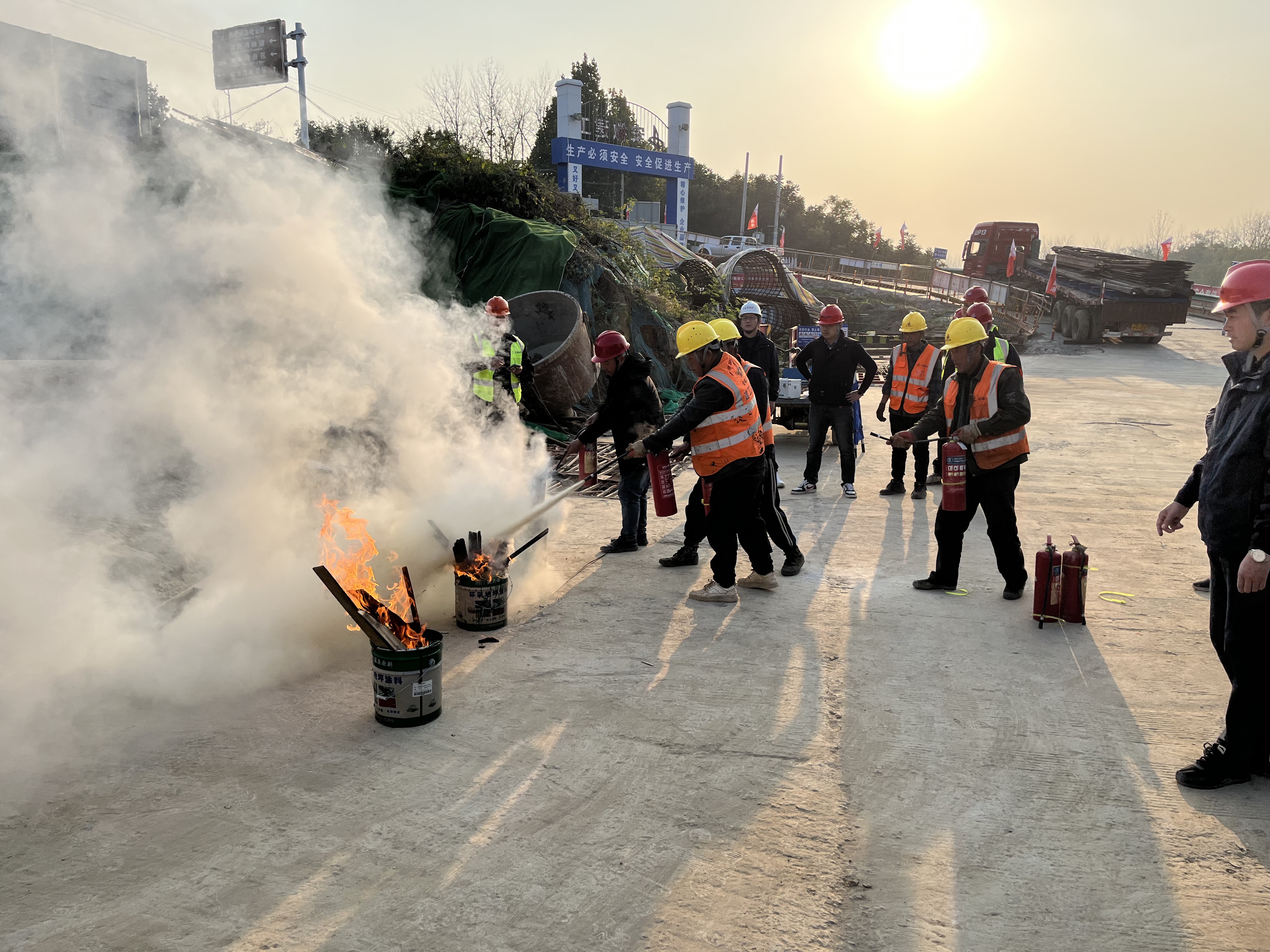11月是全國消防月,為進一步強化項目管理人員的消防安全教育,提高火災防控能力和突發事件應變能力,11月14日下午,S306馬店大橋項目部開展了“消防應急逃生預案演習”活動。業主、監理單位代表及項目部全體職工共50余人參加此次演練活動。