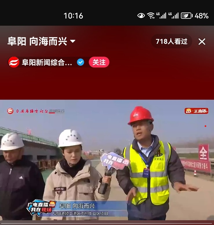 媒體聚焦丨現場直播!阜陽市電視臺在南照碼頭作業區項目開展專題報道