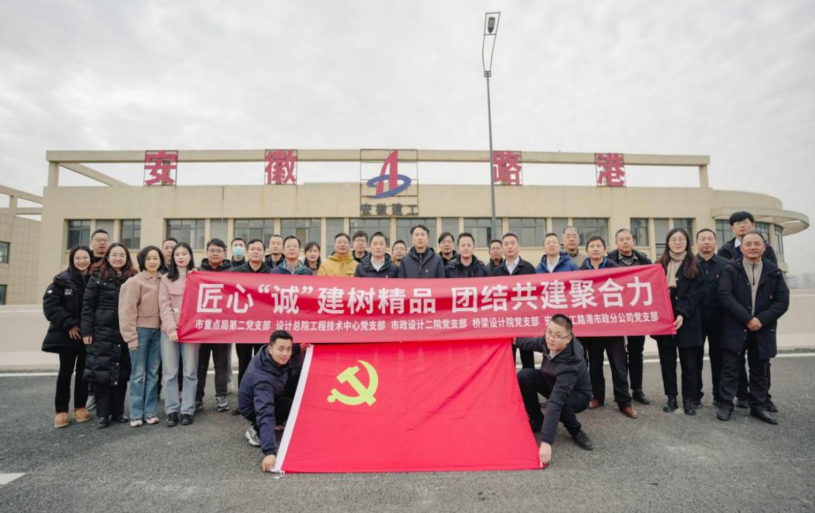市重點局處長張明,設計總院專業總工程師、工程技術中心黨支部書記、主任陳修林,建工路港黨委委員、副總經理、總工程師蘇穎,建工路港市政分公司班子成員,建設單位、設計單位有關黨員共計42人參與活動。