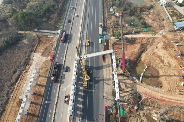 為確保首片箱梁順利架設,項目部提前謀劃、合理安排,制定了科學嚴謹的架梁方案,層層進行技術交底,合理配置各項資源,對合安高速K96+150—K96+650安慶方向進行半幅封閉,合肥方向雙向通行,確保施工全過程安全可控,為首梁的架設奠定了良好基礎。