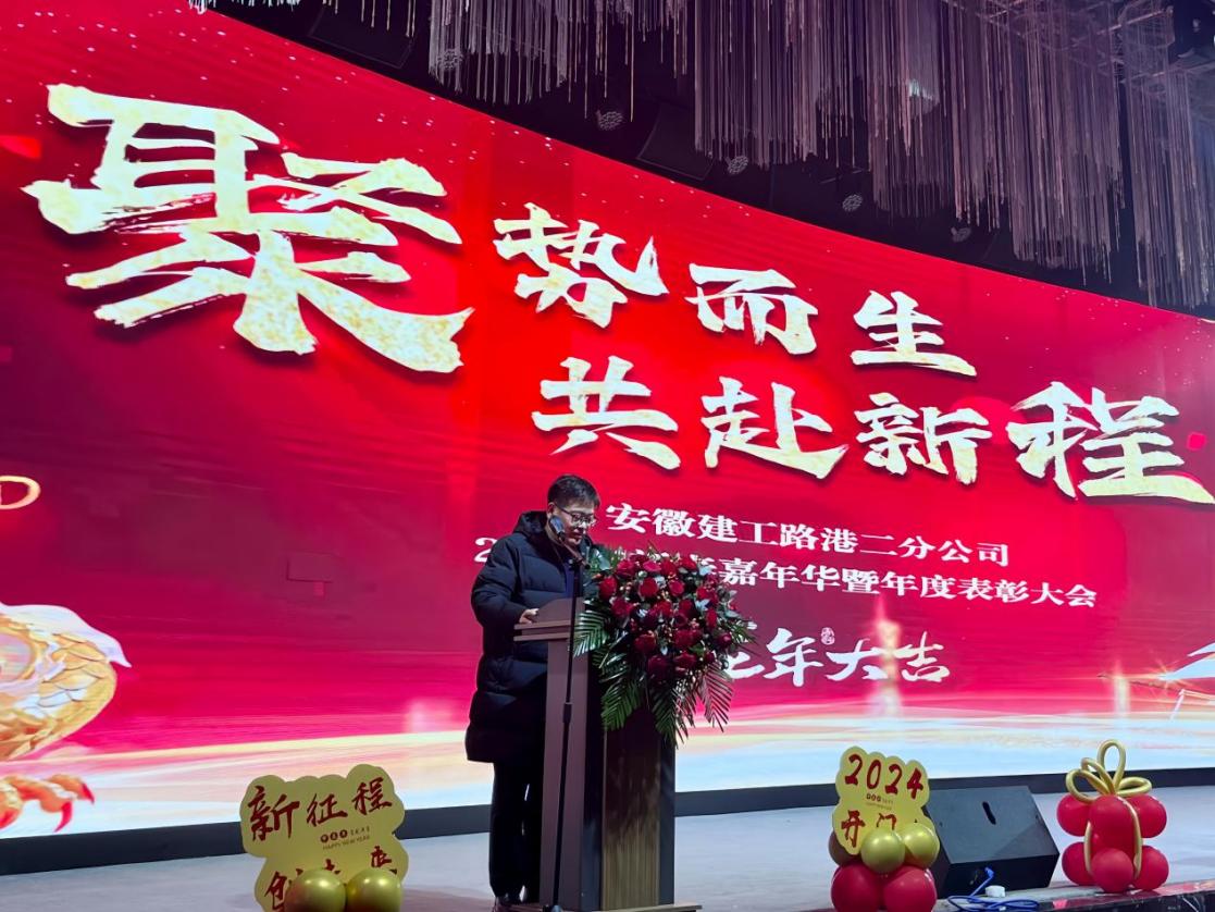 玉兔辭舊春華啟,龍騰新春氣象新。2024年2月2日下午13:58,建工路港二分公司新春嘉年華暨年度表彰大會順利召開。會議以“聚勢而生,共赴新程”為主題,旨在表彰先進、凝聚力量,共同開啟新一年的奮斗篇章。