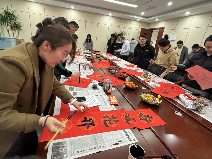 活動分為猜字謎、寫春聯兩個環節。猜字謎活動共設置了100條字謎,內容涉及科普知識、民俗文化等方面,集知識性和趣味性于一體。職工們或沉著思考,或共同探討,各顯其才,沉浸在謎底競猜之中。整個活動現場熱鬧溫馨、其樂融融。