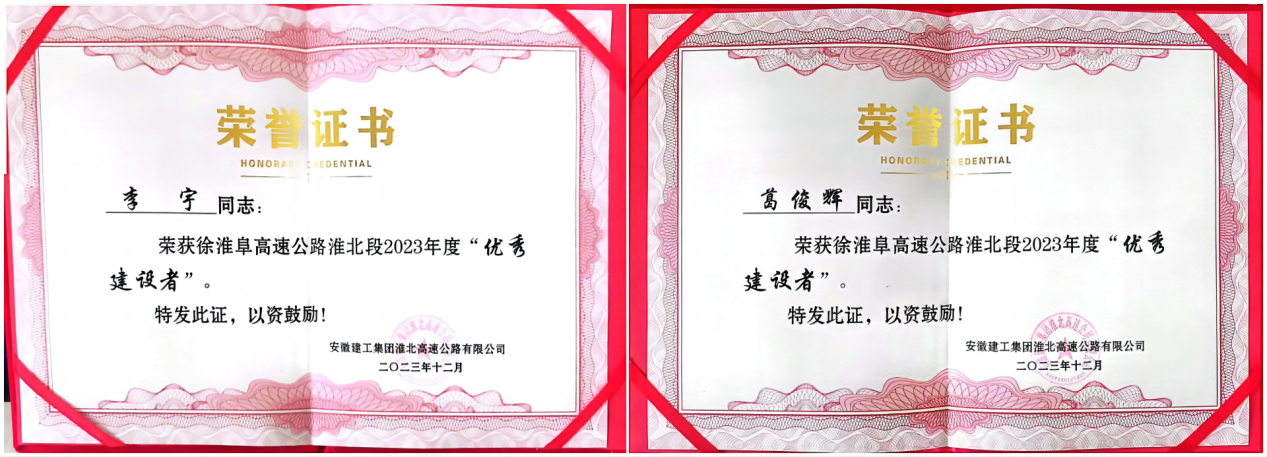 近日,安徽建工集團淮北高速公路有限公司發來《關于表彰徐淮阜高速公路淮北段2023年度“先進集體、優秀項目經理、優秀總工程師、杰出骨干、先進個人”的通報》,徐淮阜高速淮北段預制標項目部榮獲“先進集體”“杰出骨干”和“優秀建設者”等稱號。