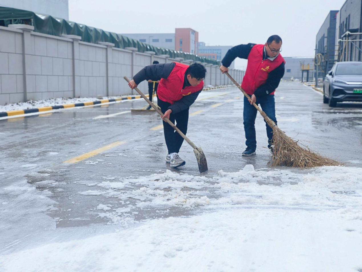 港通新材料公司的志愿者們自發(fā)組織起來,拿起鐵鏟、掃帚等清雪工具,為肥東產(chǎn)業(yè)園區(qū)交通要道清理積雪,保障職工出行安全便捷。