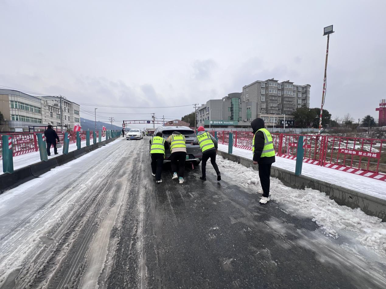 桐城大建設(shè)項(xiàng)目黨支部聯(lián)合望城村黨支部對(duì)望城村周邊進(jìn)行機(jī)械、人工掃雪除冰作業(yè),龍眠新橋項(xiàng)目部聯(lián)合屬地交警對(duì)保通道路進(jìn)行除雪、撒布融雪劑,為群眾安全出行提供便利。