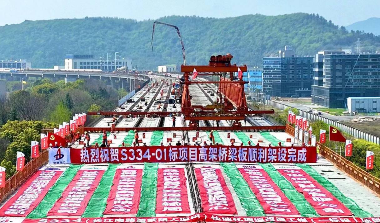 S334快速化通道改造工程第一標段全線共有主線橋梁兩座,其中控制性工程K4+009高架橋全長2128米,預制箱梁共計536片,項目團隊在施工過程中克服交通組織壓力大、地質條件復雜、征遷難度大等不利因素,順利完成全線梁板安裝任務,圓滿完成業主單位制定的節點目標。