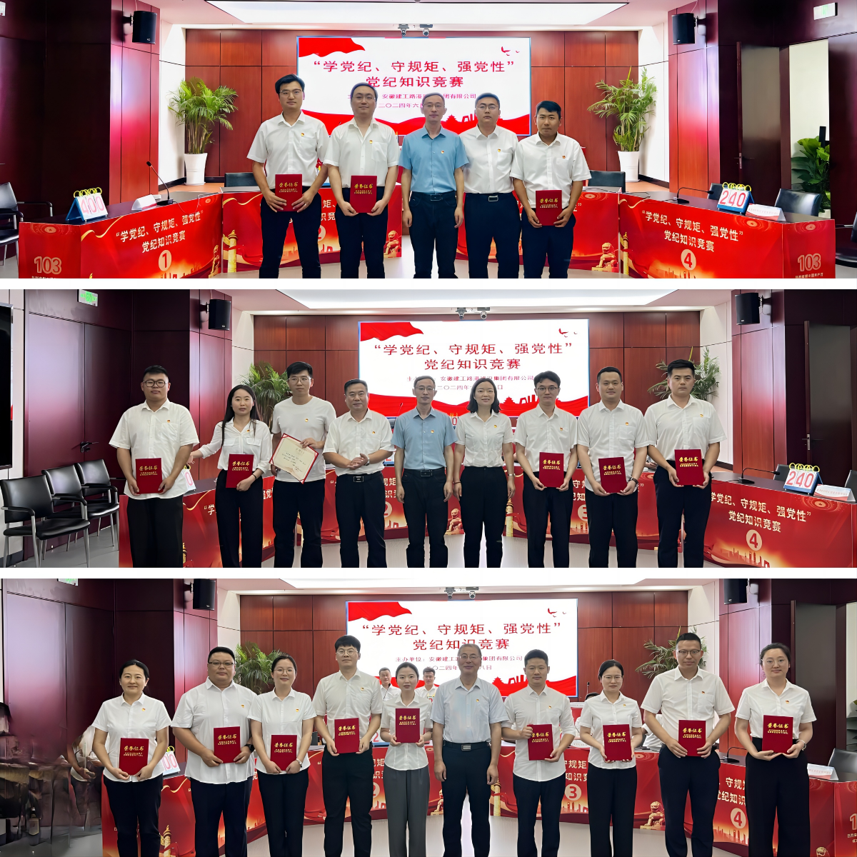 6月18日下午,建工路港“學黨紀、守規矩、強黨性”黨紀知識競賽在蕪湖總部一樓報告廳成功舉辦。公司黨委委員、副總經理宋國慶,財務總監張元斌出席活動。來自公司機關、所屬各單位的14支隊伍參賽。