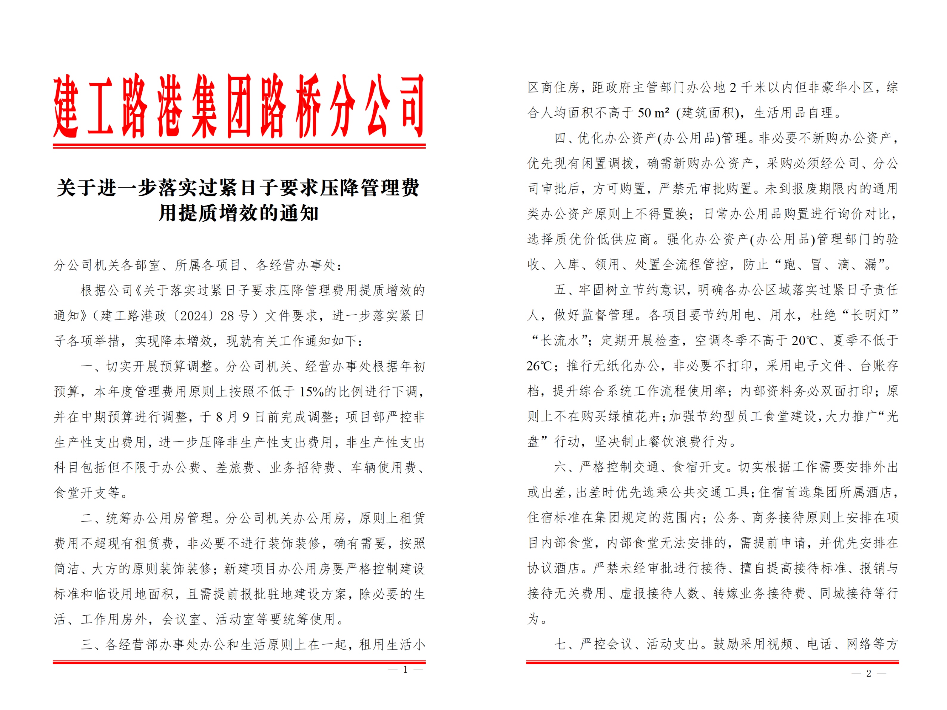 為積極響應(yīng)集團、公司過“緊日子”提質(zhì)增效工作要求,路橋分公司緊緊圍繞節(jié)約型機關(guān)建設(shè),立足分公司實際、聚焦日常工作細節(jié),落實勤儉辦公常態(tài)化、長效化,多措并舉推進勤儉辦公落實落細。