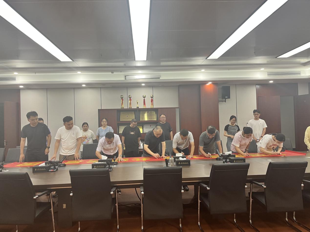 會(huì)后,參會(huì)人員共同在“質(zhì)量月”活動(dòng)主題橫幅上簽名。(文/馬建明)