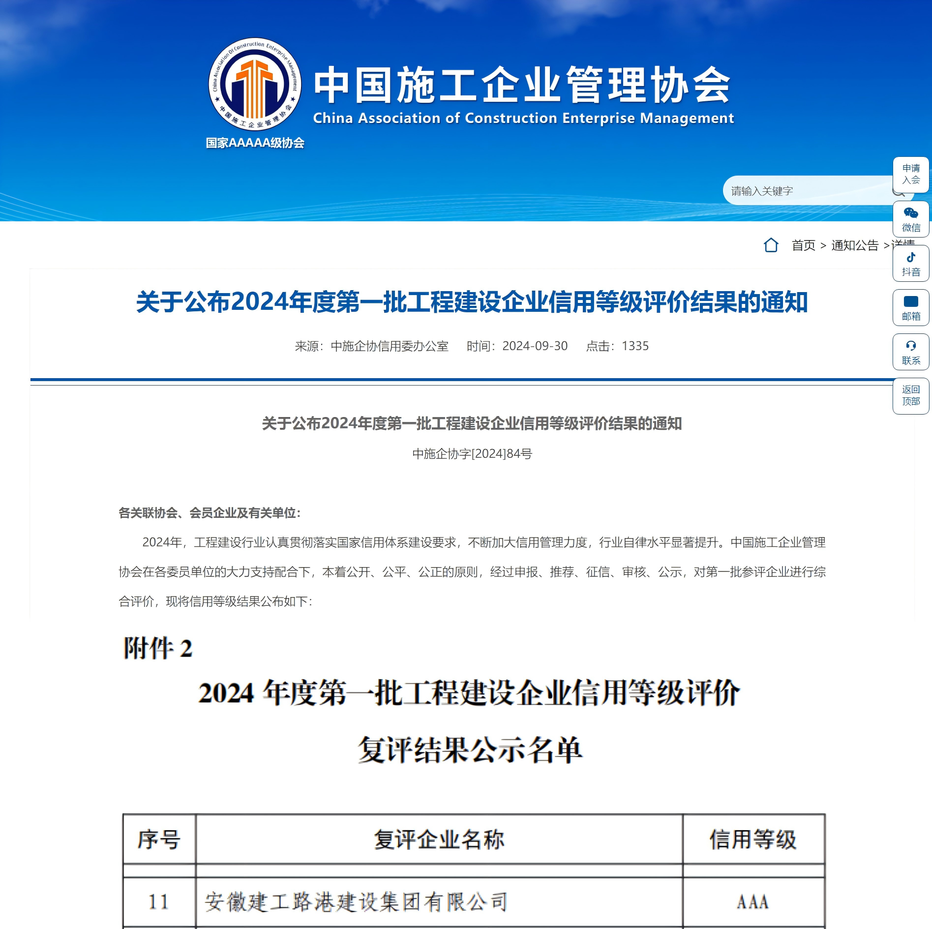 近日,中國施工企業管理協會傳來喜訊,公司成功通過2024年度的“AAA”信用復評。