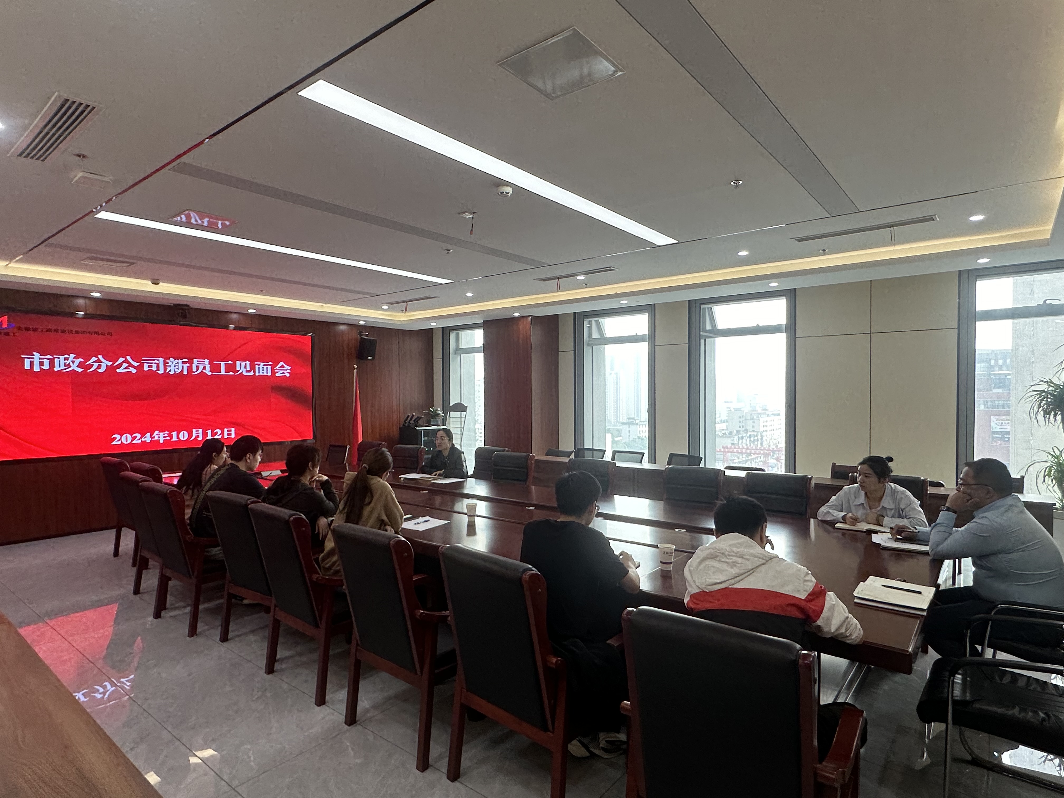 10月12日上午,市政分公司組織新入職員工見面會,分公司黨支部書記馬莉玲參加會議。