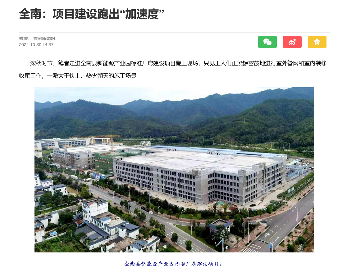 媒體聚焦|客家新聞網專題報道建工路港全南縣新能源廠房項目建設情況