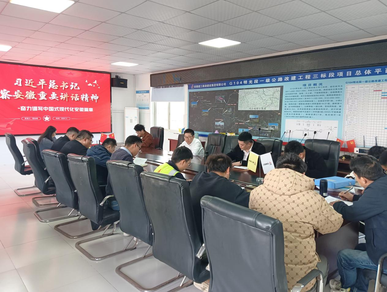 11月12日,公司黨委委員、紀(jì)委書記程永峰路橋分公司明光G104三標(biāo)宣講習(xí)近平總書記考察安徽重要講話精神并調(diào)研項(xiàng)目全體職工參加。