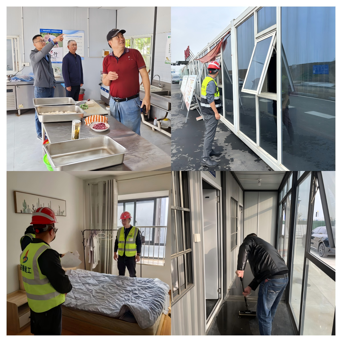 活動中,各項目安全衛生檢查小組對辦公室物品擺放是否整齊、門窗是否干凈明亮、地面是否潔凈、宿舍是否存在安全隱患等進行了全面細致的察看,對于衛生不達標的地方,當場指出并要求整改。