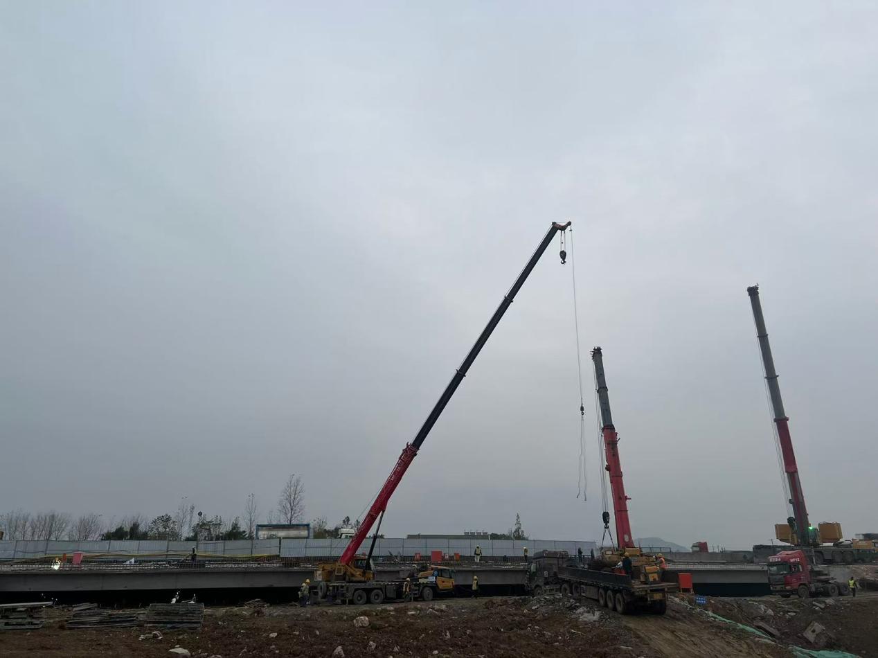 11月20日,隨著最后一片25m箱梁安全平穩(wěn)的架設在NK105+583橋支座上,S90王鐵樞紐北側路改橋梁板架設圓滿完成。