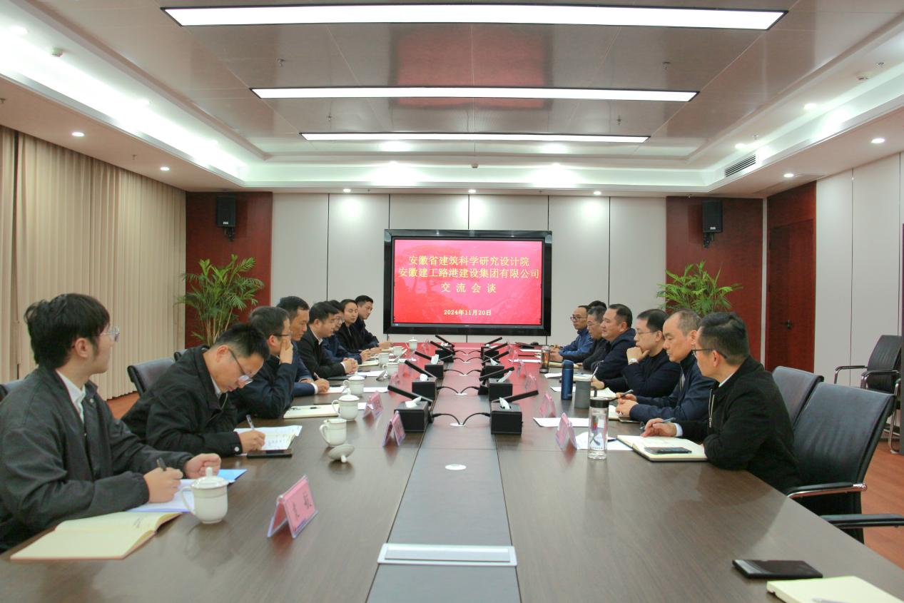 安徽省建筑科學研究設(shè)計院領(lǐng)導崔林釗、馬良浮,建工路港領(lǐng)導徐堯、陳廣杉,以及雙方有關(guān)部門、單位人員參加會談。