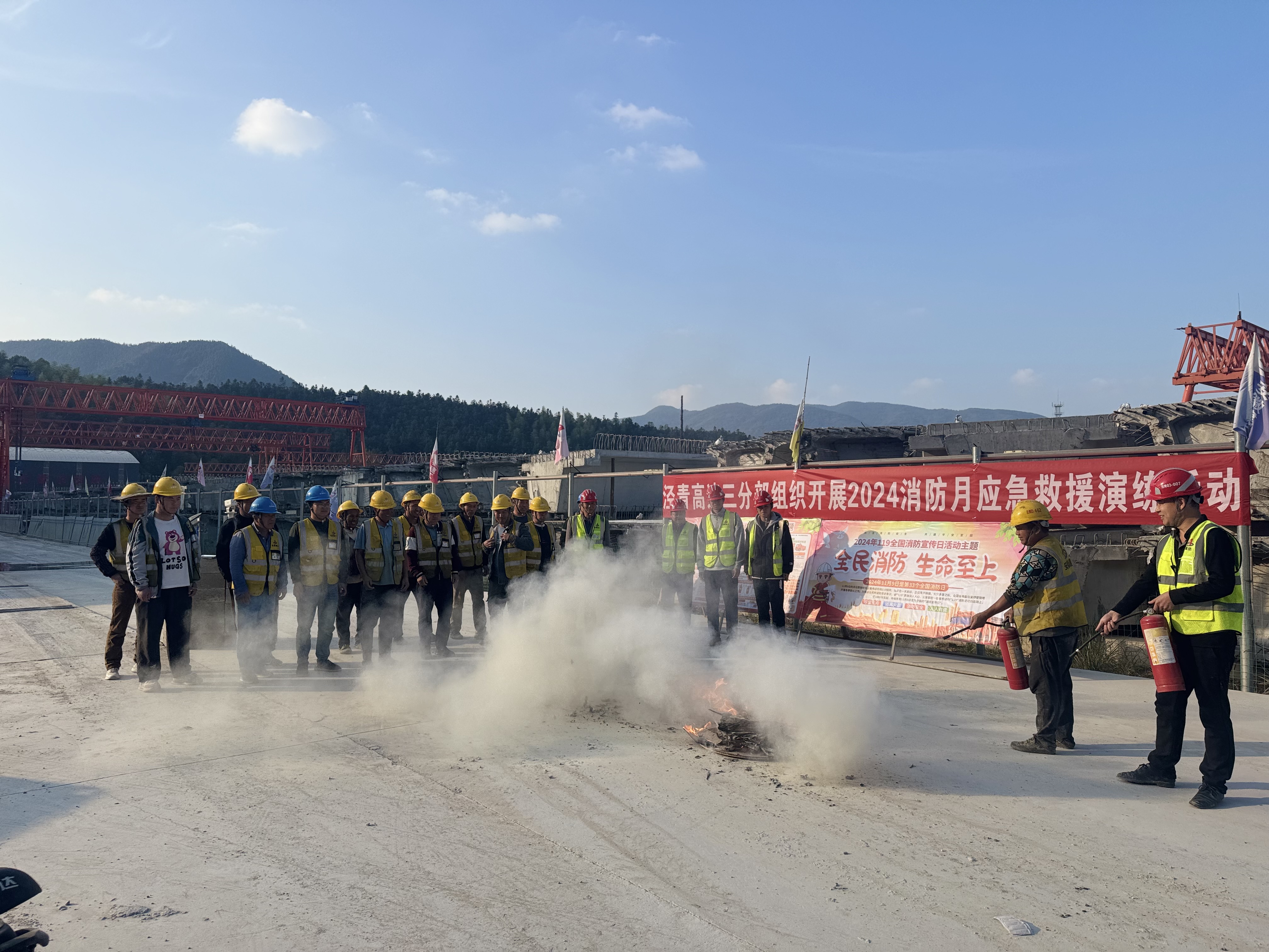 11月25日,涇青高速三分部項目開展“全民消防,生命至上”主題消防月應急演練活動。