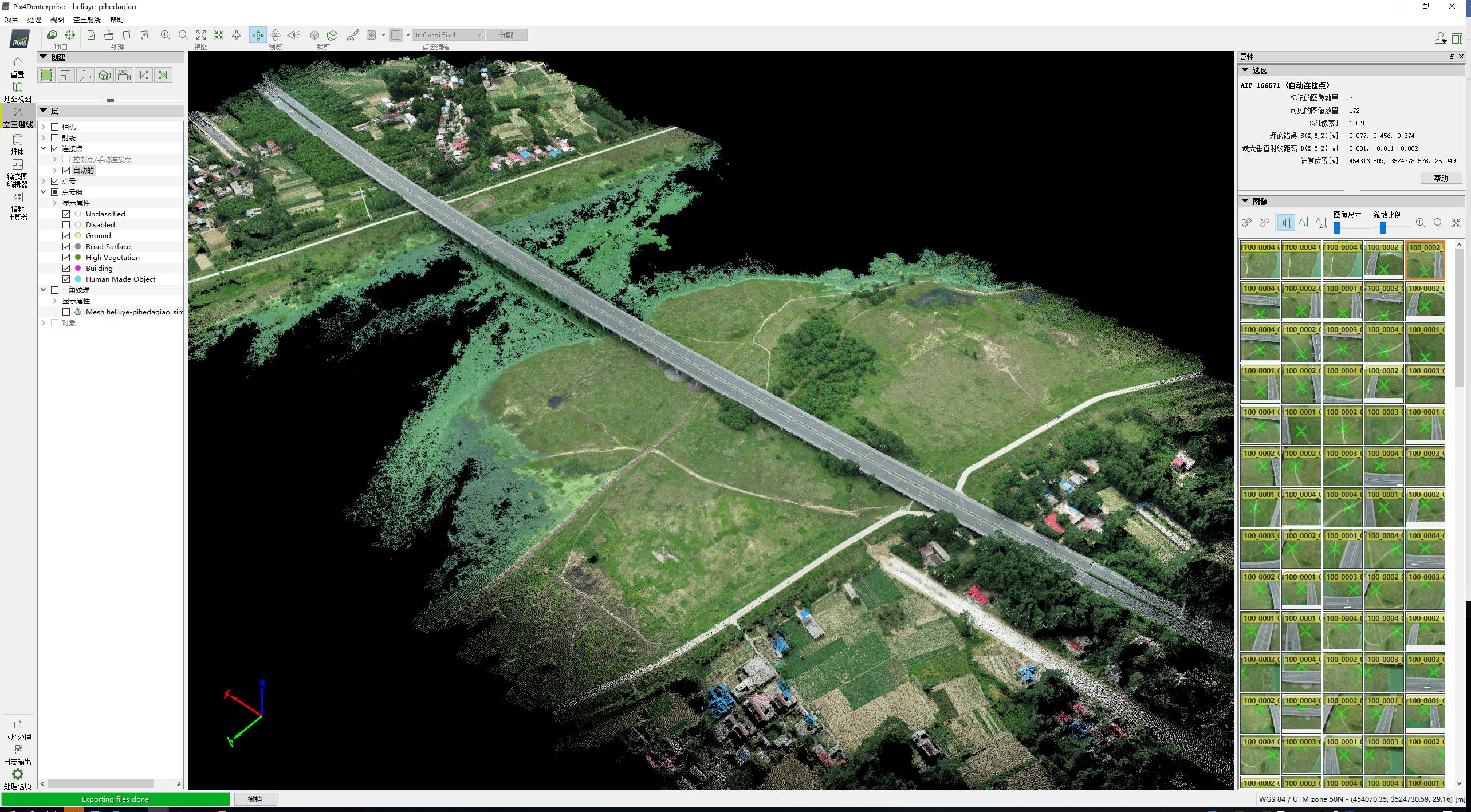 為了破解這一難題,項目部引入了實景三維合成技術(shù),充分利用無人機激光雷達掃描航拍、并結(jié)合衛(wèi)星遙感等先進數(shù)據(jù)源,成功從多個維度捕捉了地面場景的圖像,進而生成了高精度、高分辨率且真實感強的三維點云模型,并與衛(wèi)星地圖結(jié)合,真實反映點云的具體位置,房屋類型,村莊、道路名稱等。這一模型的應用,不僅能夠透過樹木看地形,直觀地了解地形地貌特征,還利用點云模型進行篩分,提取地面高程點信息,通過基準地面高程達到多個施工隊伍土方自平衡,大大節(jié)省了現(xiàn)場踏勘的時間,顯著提高了工作效率。