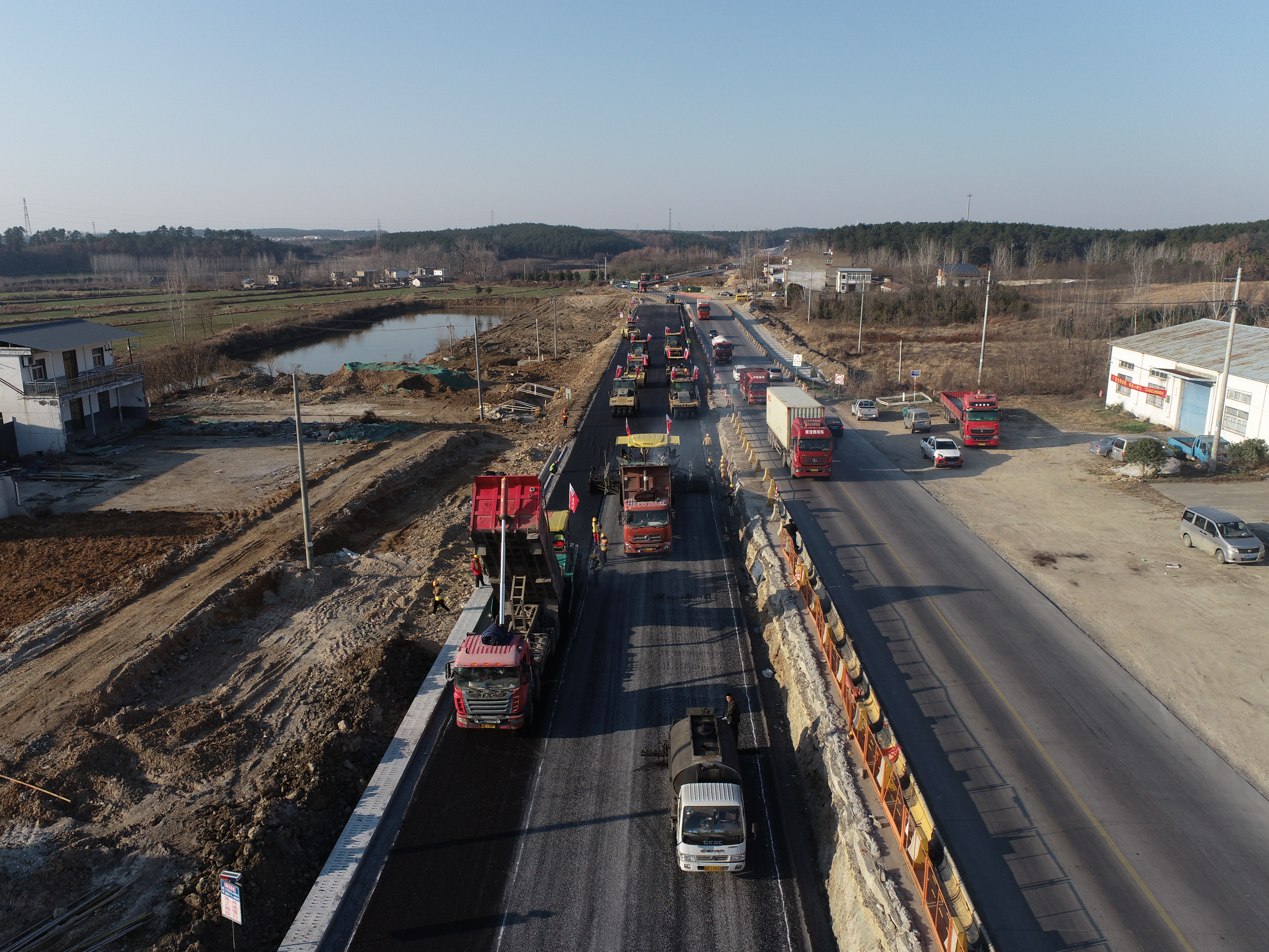 【競(jìng)速前行 節(jié)點(diǎn)突破】建工路港G104明光段一級(jí)公路改建工程三標(biāo)段瀝青試驗(yàn)段順利攤鋪完成