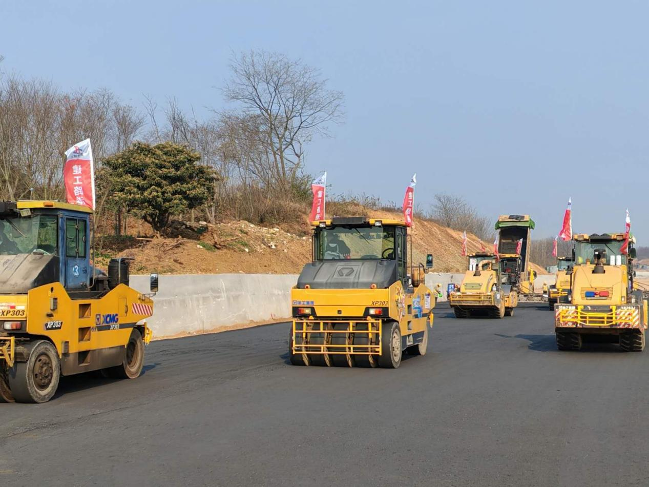 【競速前行 節點突破】建工路港S90蕪合高速肥東支線路面標水穩底基層試驗段攤鋪順利完成