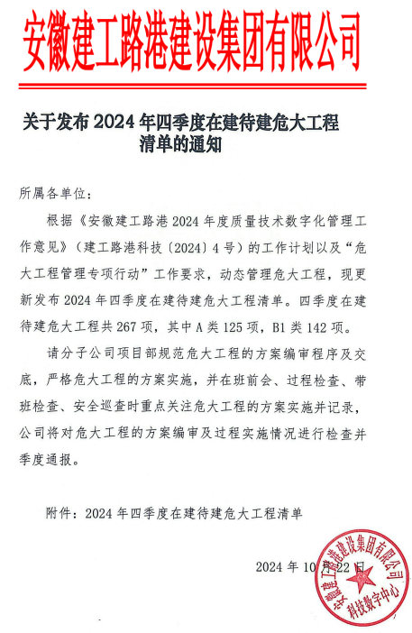 季度更新在建待建危大工程清單的通知
