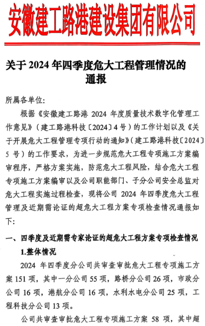 日前,建工路港危大工程專項施工方案評選結果順利出爐,標志著“危大工程管理專項行動”圓滿收官。