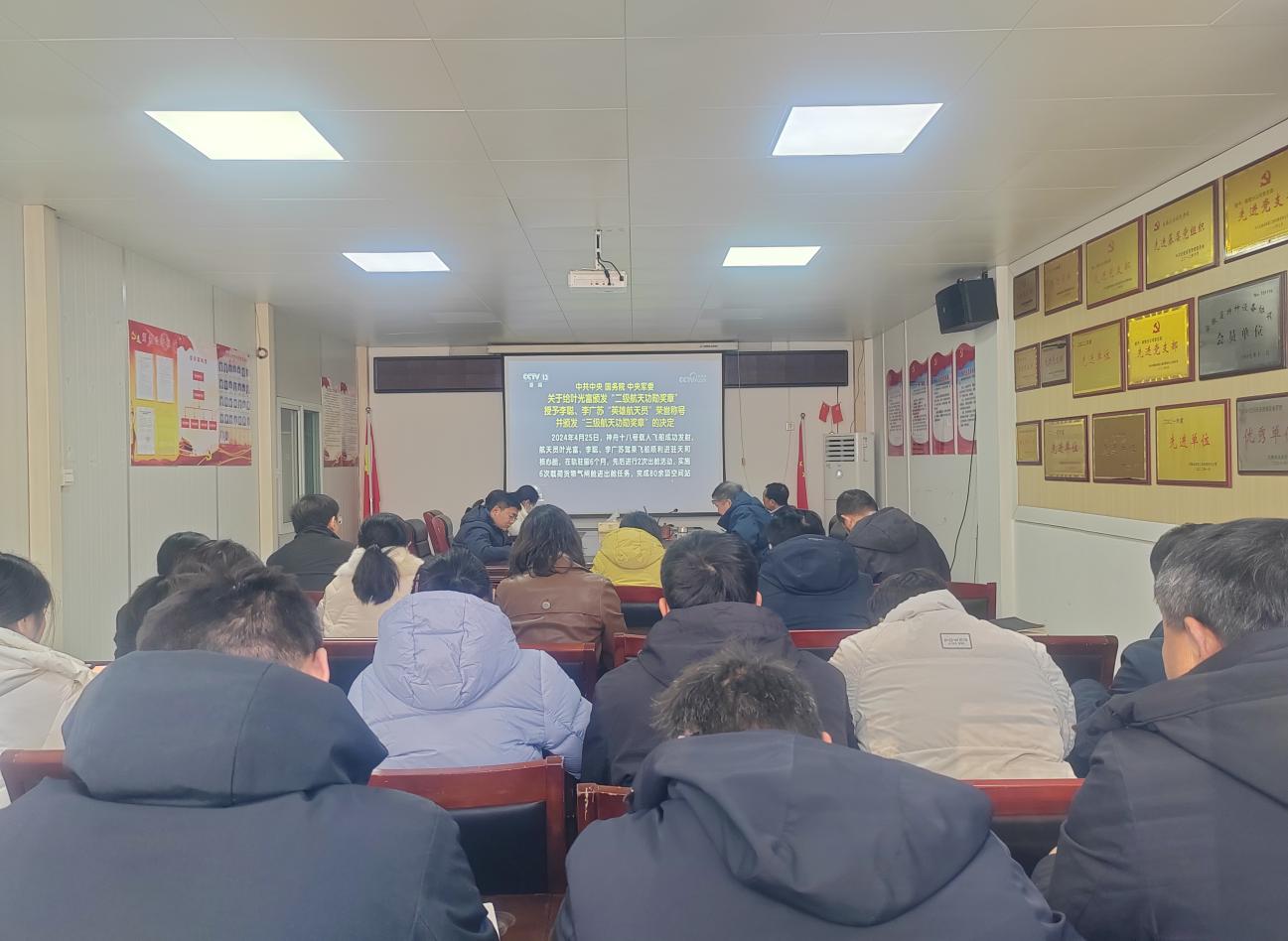 會上,通過觀看相關視頻,大家認真學習了航天員的英雄事跡,了解航天事業發展的不凡歷程以及重大突破,領會葉光富、李聰和李廣蘇同志的載人航天精神。