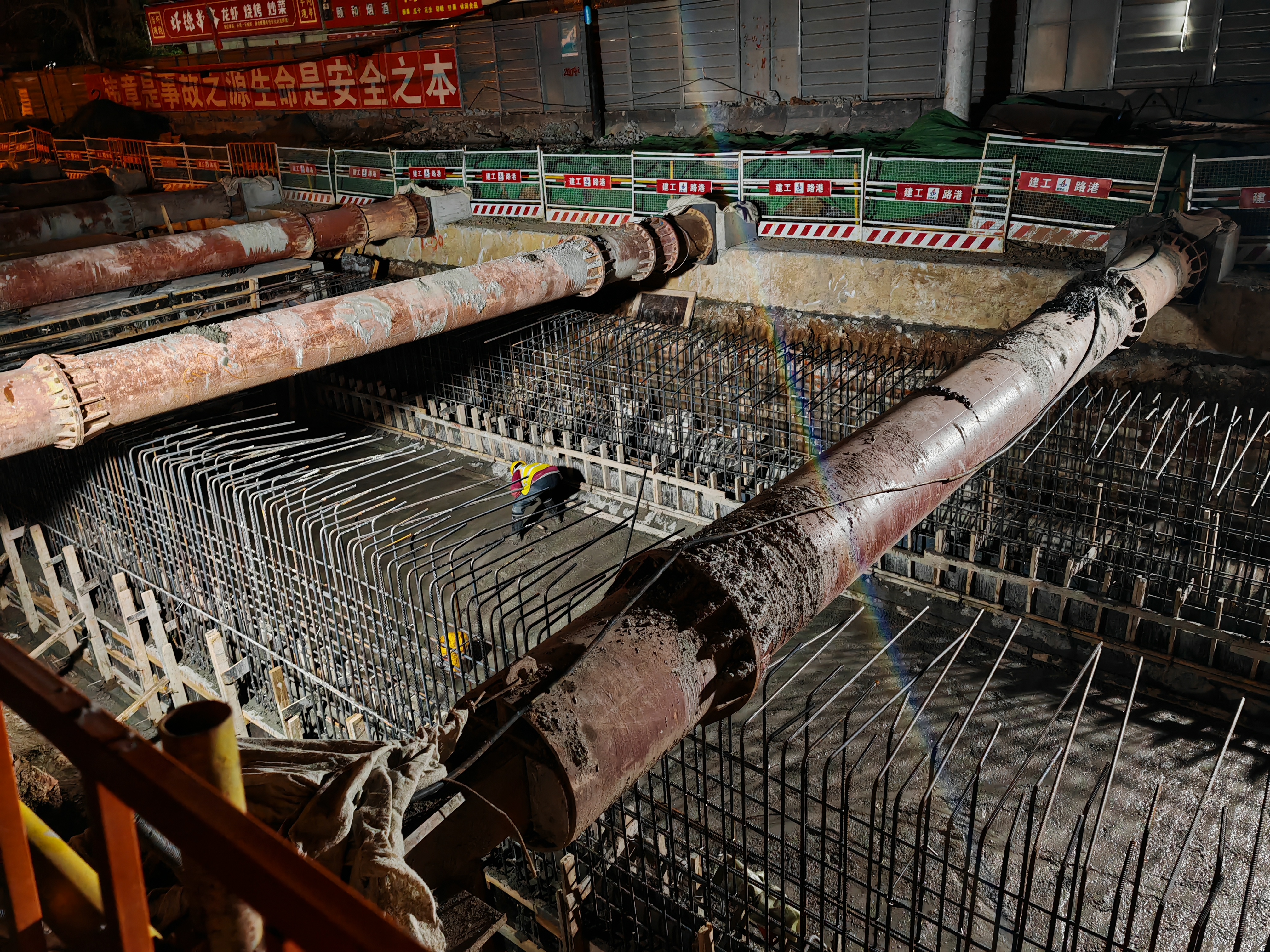 在繁忙的工地上,伴隨著機械的轟鳴聲和工人們忙碌的身影,施工現場呈現出一片熱火朝天的建設景象。自工程啟動以來,項目部始終秉持高標準、嚴要求的理念,科學組織、精心策劃,合理調配資源。為最大限度減少夜間施工對周邊環境的影響,項目部優化施工工序,將鋼筋綁扎等低噪聲作業安排在夜間進行,既保障了工程進度,又體現了文明施工的理念,確保項目建設高效、有序推進。