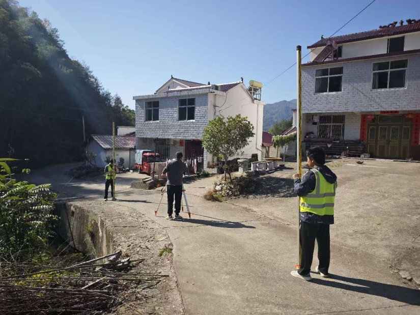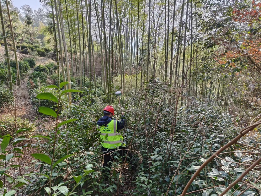 他們相互攙扶、輪番扛儀器,其中有幾個(gè)點(diǎn)在懸崖邊上,為了準(zhǔn)確了解場(chǎng)地現(xiàn)狀并采集準(zhǔn)確可靠的原地面數(shù)據(jù),他們摸索著前進(jìn)、爬上山頂。在山林中穿梭的測(cè)量人用腳步丈量著每一寸土地,用默默無言的付出、專業(yè)扎實(shí)的能力保障了項(xiàng)目建設(shè)的精度。