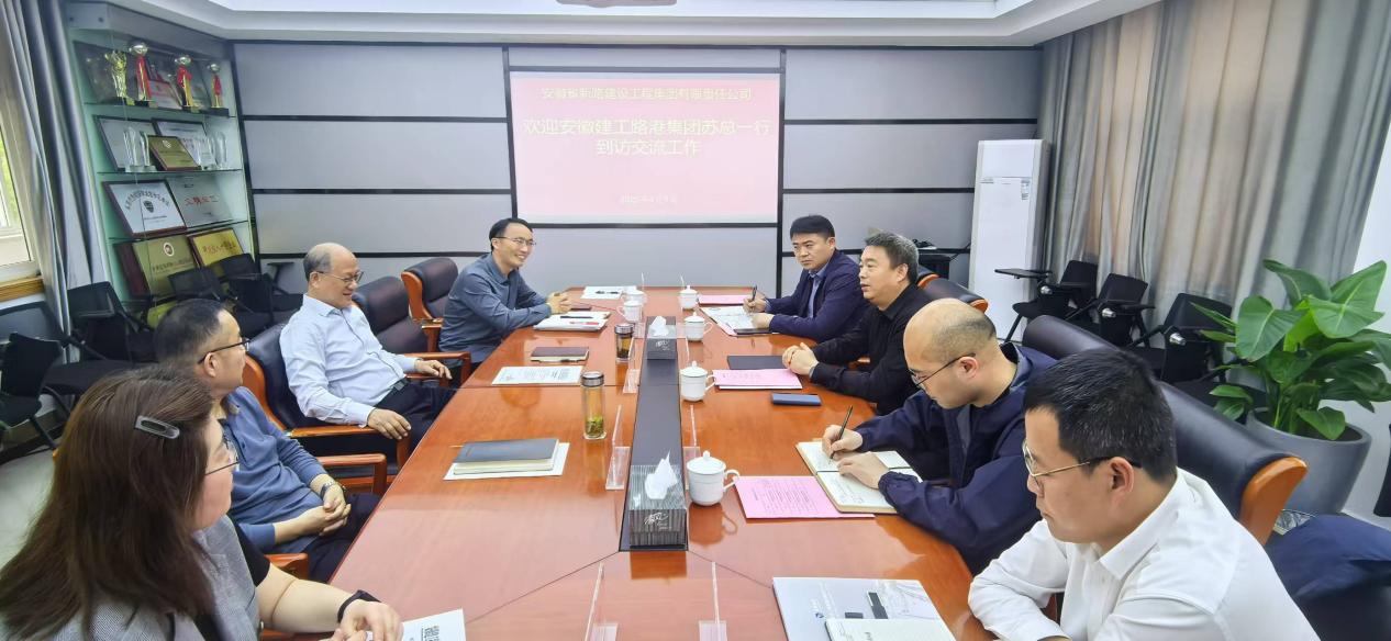 為進一步深化戰略合作,推動項目高效實施,近日,公司黨委委員、副總經理、總工程師蘇穎率隊拜訪安徽新路建設集團,并與安徽新路建設集團黨總支副書記、總工程師郝智明舉行工作會談。