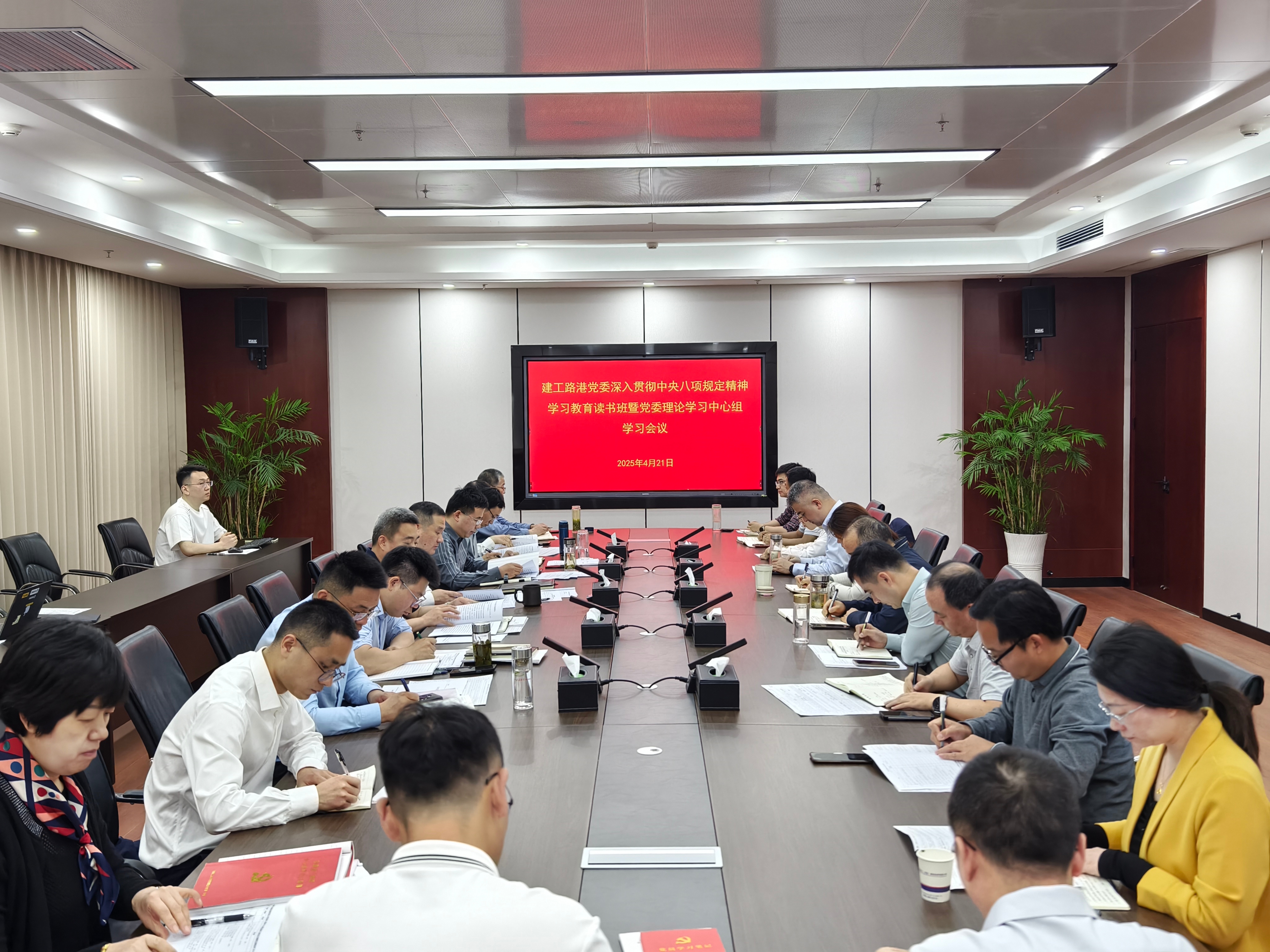 4月21日,建工路港黨委深入貫徹中央八項規定精神學習教育讀書班開班。公司黨委書記、董事長錢葉琳主持開班式并講話,公司領導班子成員、機關部門負責人參加。