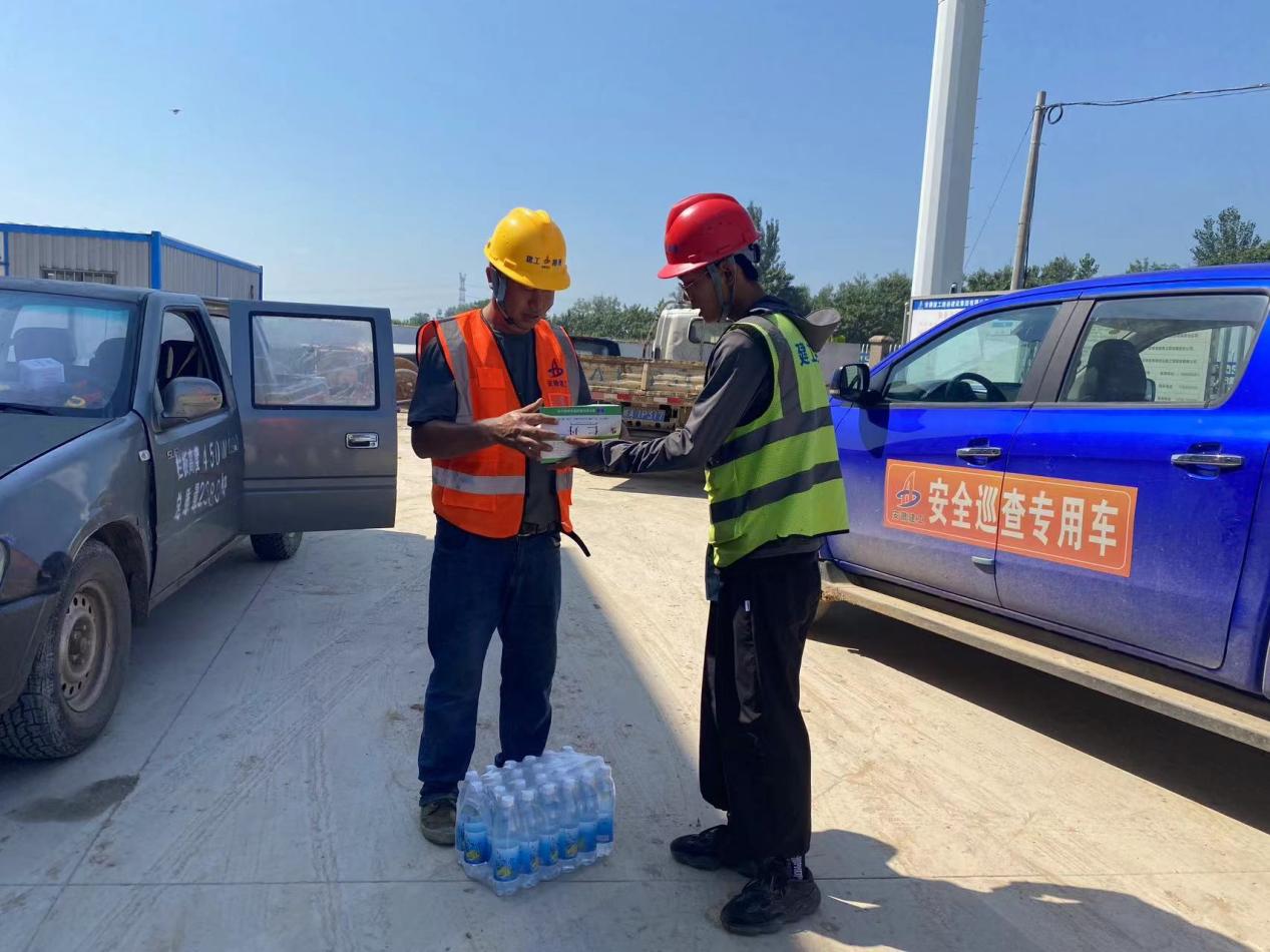 活動中,項目部為奮斗在一線的工人們送去了藿香正氣水、人丹、風油精、清涼油、鹽汽水等防暑降溫物資。為確保夏季施工安全,項目部采取多項措施積極做好防暑降溫工作:一是實行“抓兩頭、歇中間”的彈性工作制,避開正午高溫時段施工。二是合理安排值班、工作時間,同時完善應急預案,認真做好高溫作業安全指導等相關工作,確保工人們的安全健康。三是通過安全宣講、懸掛警示標語等方式,普及中暑預防和急救知識,強化作業人員的自我防護能力。