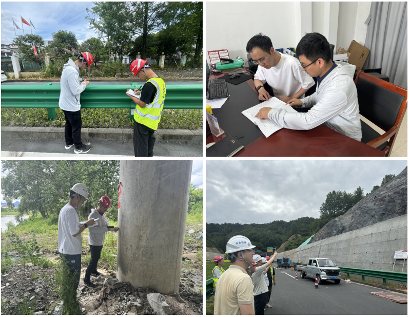 本次檢查通過現場查看、實體檢測、資料核查相結合的方式,對K4+700-K5+150段波形護欄板厚、波高等關鍵質量指標進行檢測,并核查其合格證、檢測報告等資料,實現內業與外業的相互驗證,為近期順利交工查漏補缺;檢測K0+433漳水河大橋3-4、3-5立柱混凝土強度和鋼筋保護層厚度;檢查ZK3+890-ZK4+060左幅高邊坡掛網防護施工規范性與安全要求落實情況,以及路基排水、防護等附屬工程的質量與功能完備性,消除雨期隱患。