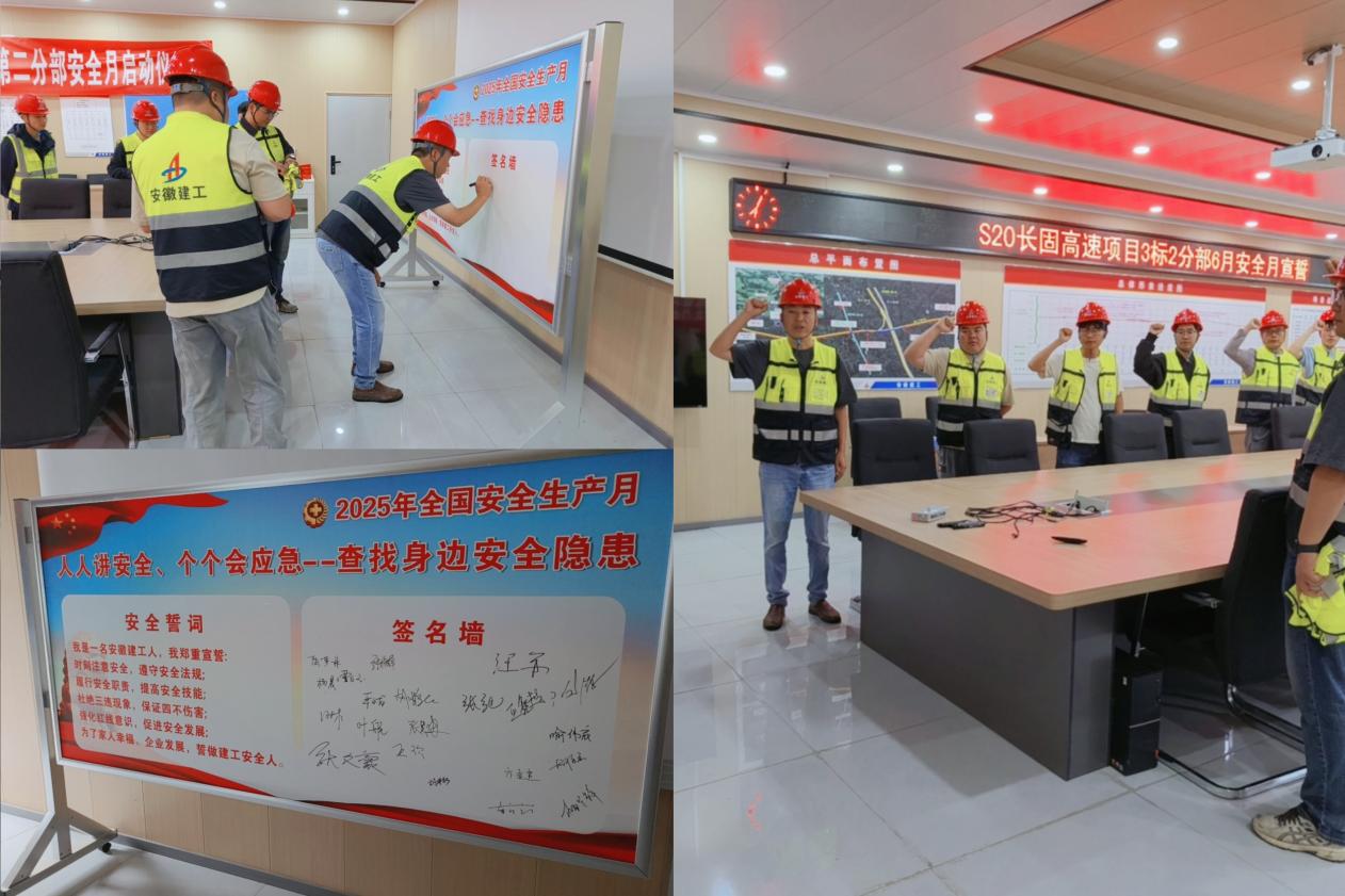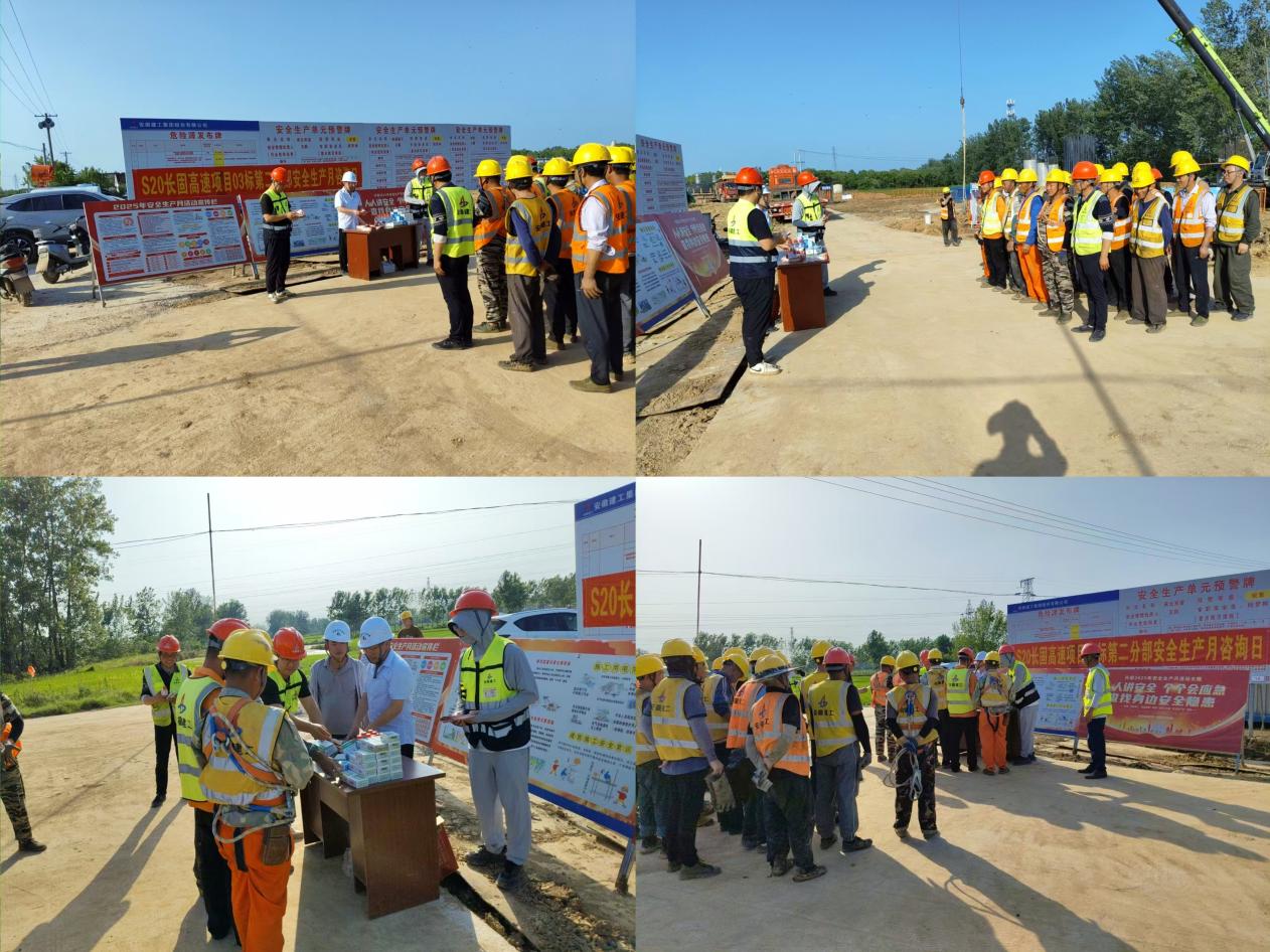 為深入貫徹落實全國第24個“安全生產月”活動要求,進一步增強全員安全生產意識,提升項目安全管理水平,S20長固高速項目緊扣“人人講安全,個個會應急——查找身邊安全隱患”主題開展安全月系列活動,為項目高質量建設營造了良好的安全生產環境。