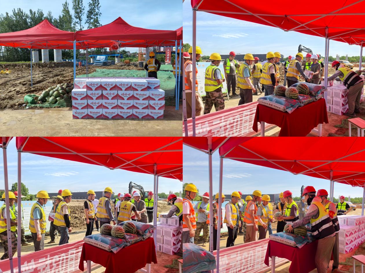 項目部聯合駐地辦開展“送清涼、保安全”慰問活動,為一線施工人員發放藿香正氣水、仁丹、西瓜和礦泉水等防暑降溫物資,并調整作業時間,避開高溫時段,確保高溫天氣下的施工安全。