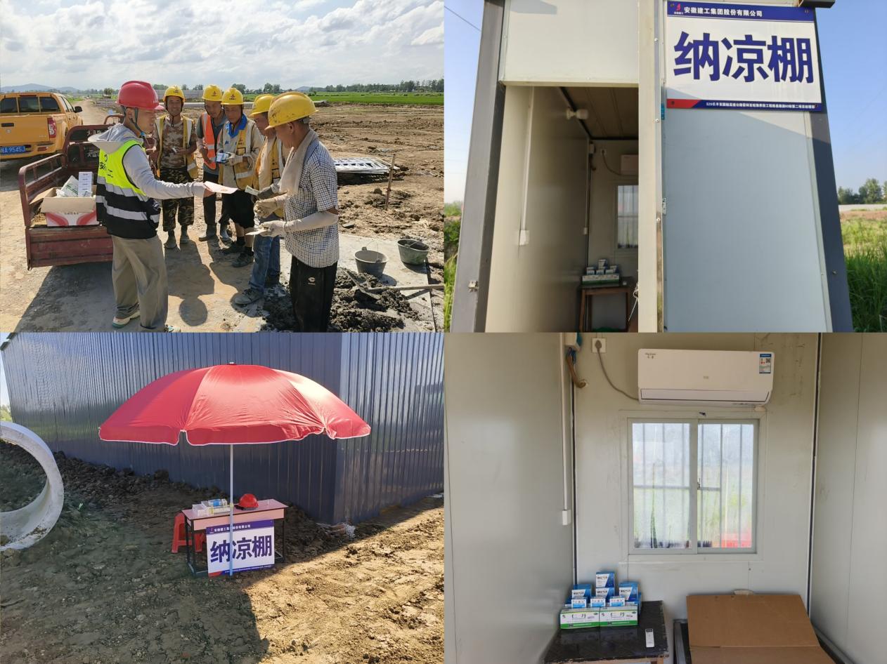 為保障安全生產,項目部通過搭設納涼棚、發放防暑降溫用品等舉措,為一線工人撐起“清涼傘”,讓一線作業人員在勞作間隙能快速驅散燥熱,恢復體力。截至目前,全線共設置6處納涼棚,累計發放防暑降溫物品2000余份。