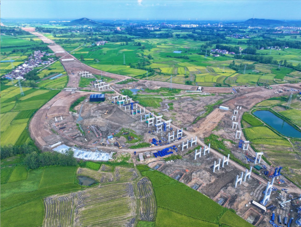 本項目關鍵線路馬店樞紐主線橋建設現場墩柱林立、吊臂舒展,目前該橋已完成樁基施工92%、墩柱施工81%,正在有序開展蓋梁和現澆箱梁施工。8月份計劃產值2610萬元,實際完成3403萬元,完成率130.4%。累計完成產值16255萬元,占年度計劃22000萬元的73.9%。