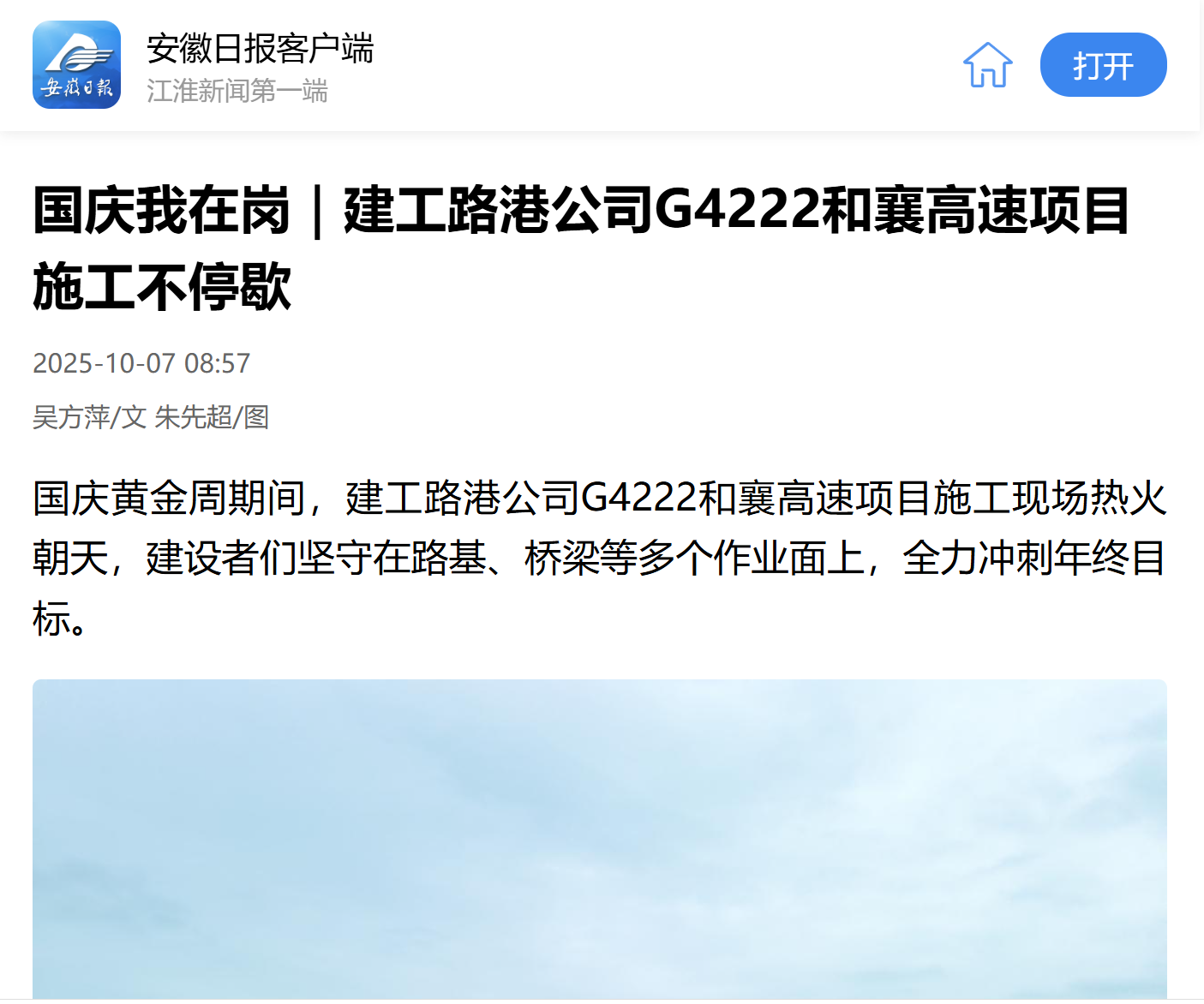 媒體聚焦丨安徽日報對建工路港公司多個項目“雙節”攻堅大干進行報道